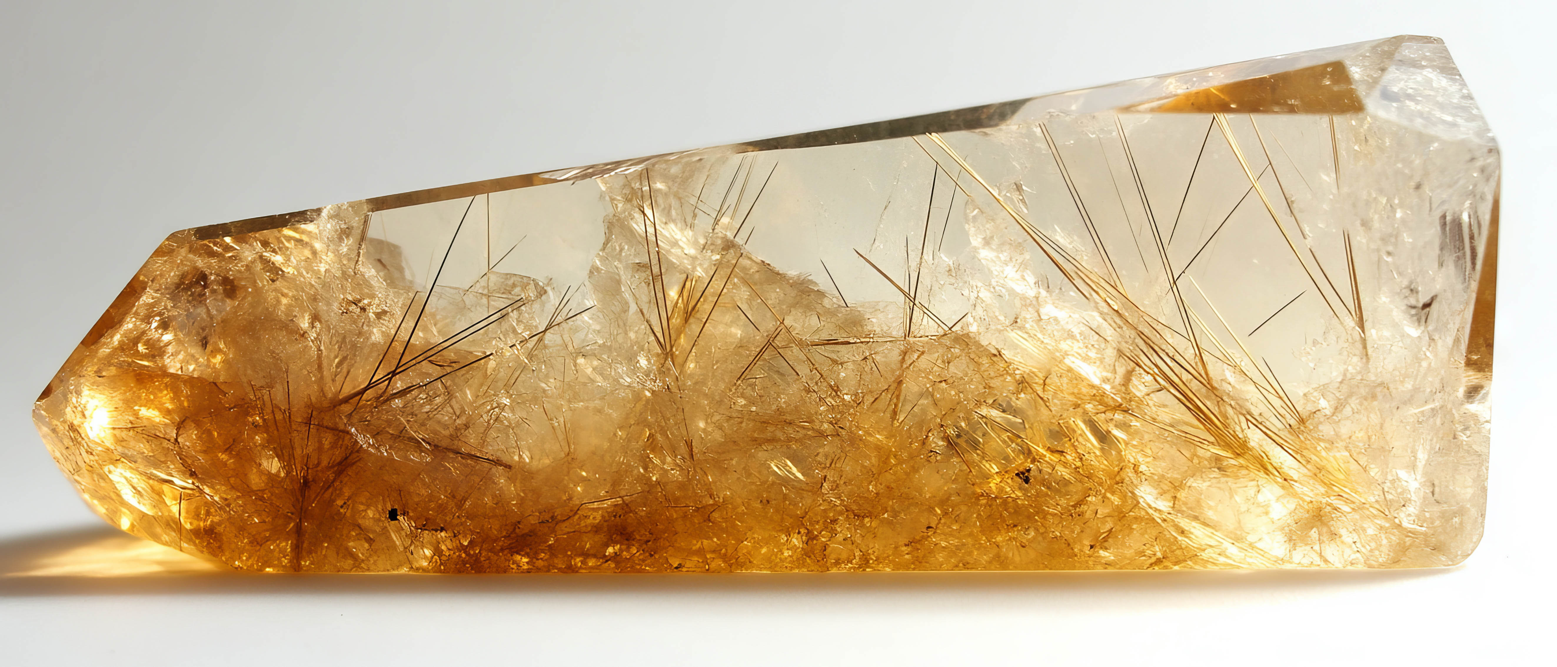 ルチルクォーツは、その中に輝く金色の針状の鉱物(ルチル)が特徴で、「金針水晶」とも呼ばれます。その美しい輝きから、古くから富や繁栄を象徴する石とされてきました。