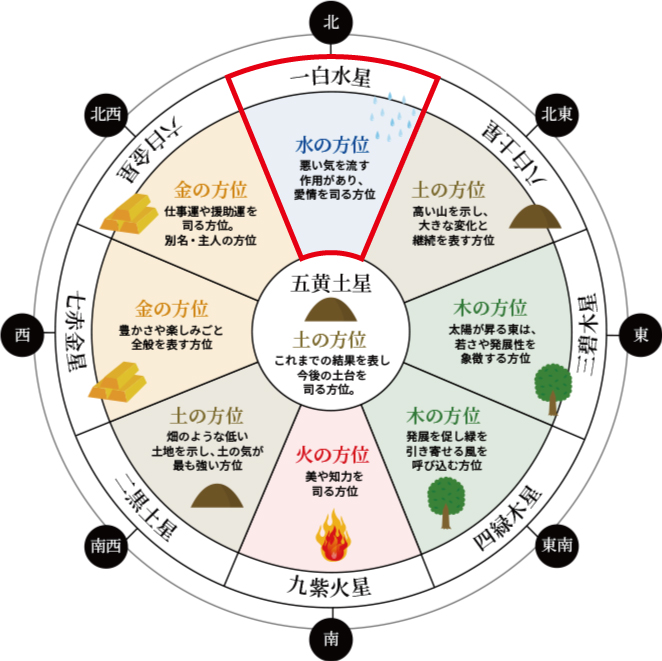 九星気学における「一白水星(いっぱくすいせい)」は、北に座し“水”の気を象徴する星。