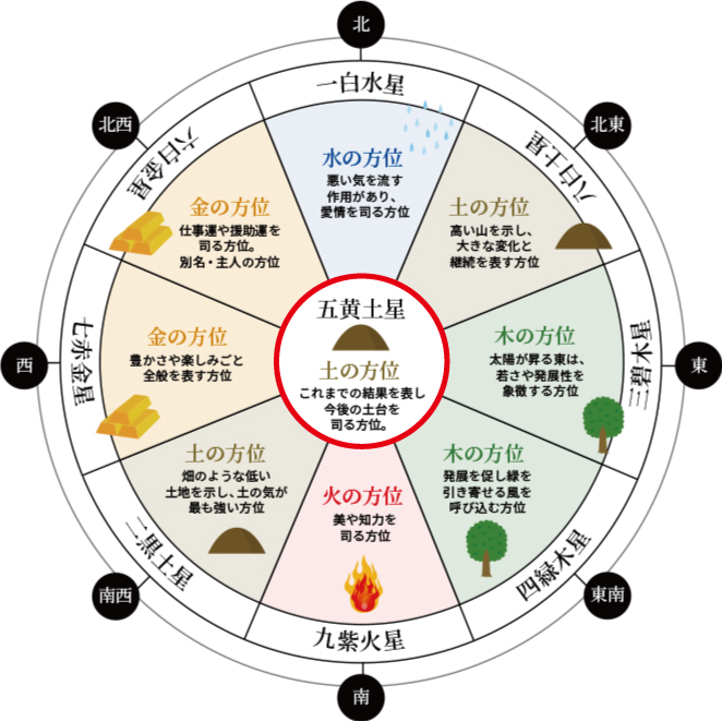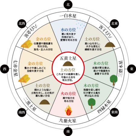 九星気学における「五黄土星(ごおうどせい)」は中央に位置し、五行では“土”を象徴します。