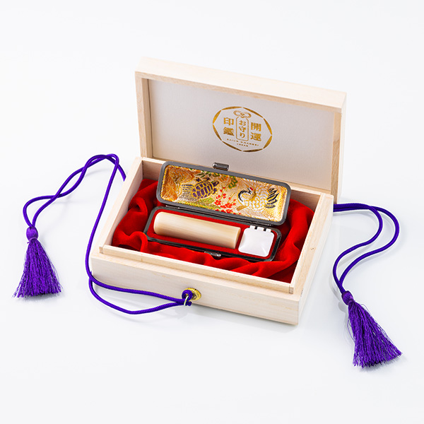 当店では美しい飴色にこだわり、選びぬかれた色合いと硬さを持った白水牛のみを選び、金持神社で「開運・金運祈願」をして頂いた印材に、開運の運気と想いを込めて刻印致します。