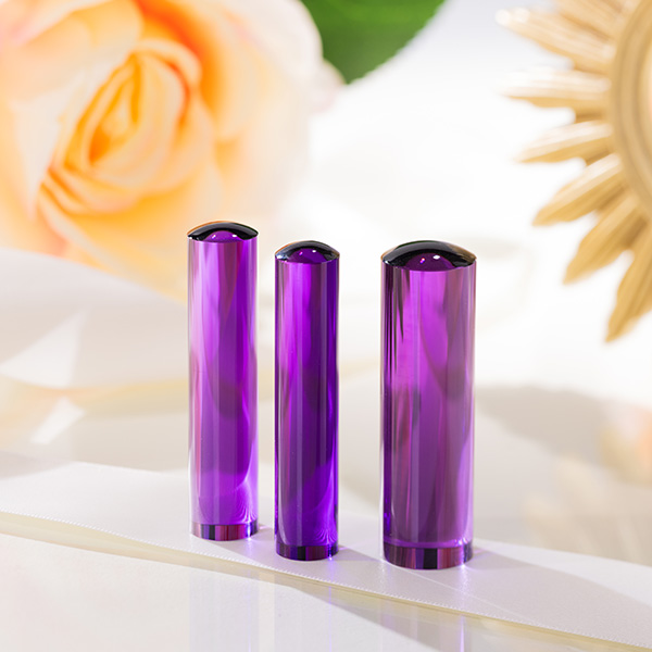 「情熱の赤」「冷静の青」が混じり合っているアメジスト印鑑は「知性の石」と呼ばれ、、人生の決断の際にも、冷静な判断力を与えてくれます。