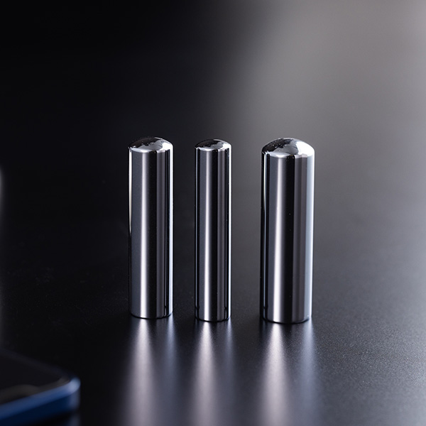 重量感を帯びた、メタリックな輝きを放つヘマタイト印鑑。