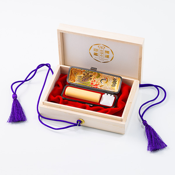 さらに、キメが細かいもの、粘りのあるもの、木目が美しい素材を厳選し、金持神社で「開運・金運祈願」をして頂いた印材に、開運の運気と想いを込めて刻印致します。